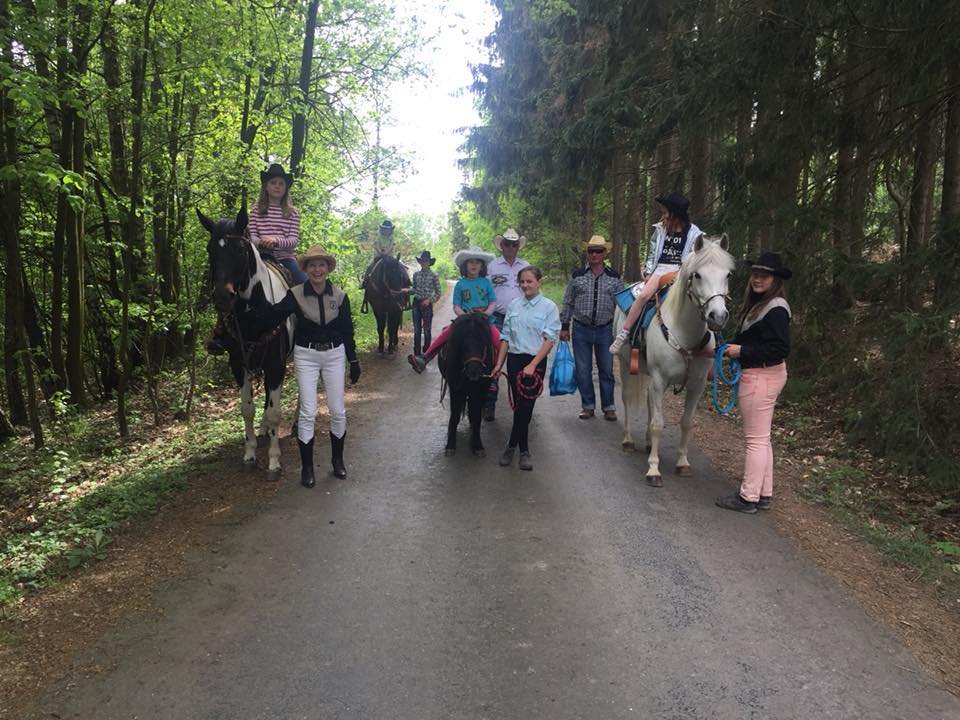 Máme devět koní různých plemen, koně jezdí western, někteří jezdí i na závody. Koně bydlí na pastvině, kde mají přístřešky. Máme velké koně i malé poníky, kteří Vás rádi povozí.